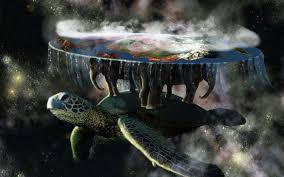 Terry Pratchett vychádzal z tohto dávneho indického mýtu, podľa ktorého drží našu planétu niekoľko sloních chobotov a tie slony ešte stoja na korytnačke, ktorú my zo Zeme vidíme ako posvätnú horu Meru, okolo ktorej obiehajú všetky vesmírne telesá.
